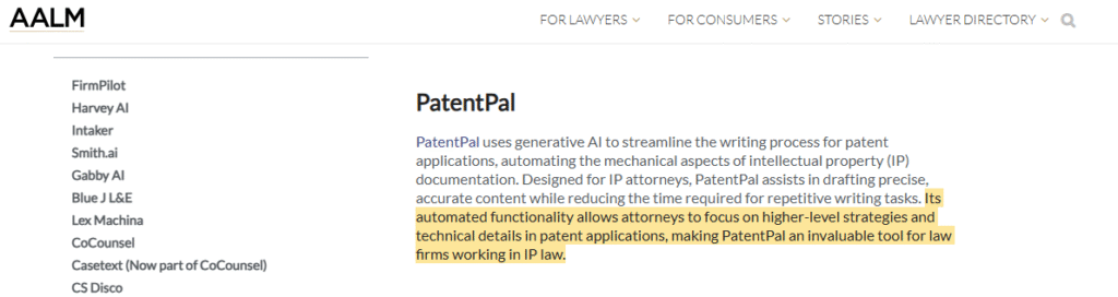 This shows PatentPal is recognized alongside other reputable drafting tools in the IP community.