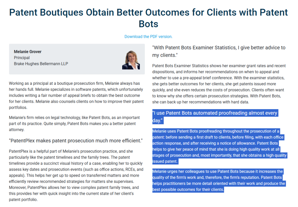 It is highly valued by patent professionals for improving the consistency, compliance, and enforceability of patent documents.